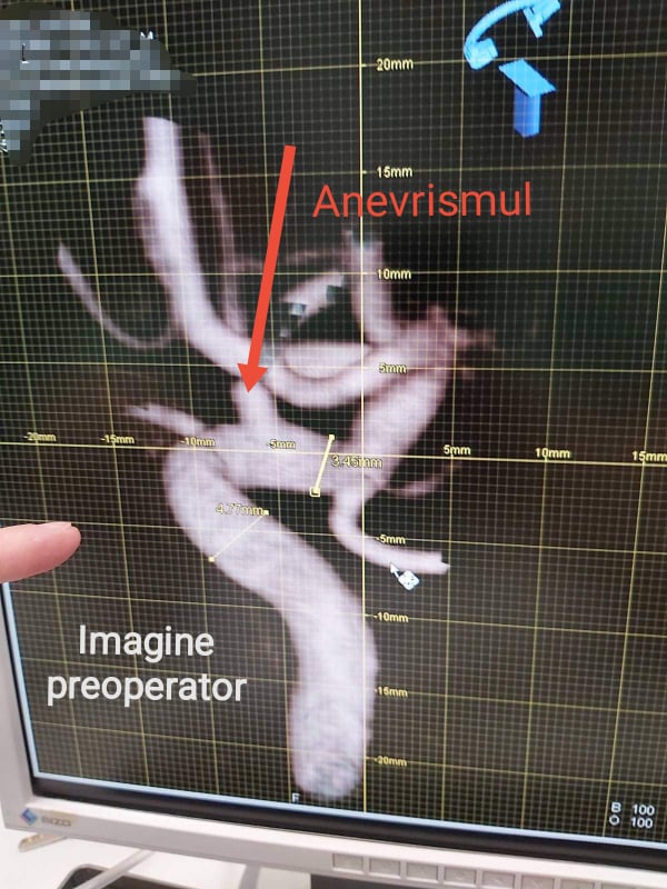 Anevrismul este o patologie ce se caracterizează prin subțierea peretelui vascular și dilatația acestuia. Aceste dilatații prezintă un risc crescut de rupere și hemoragii cerebrale. În cazul pacientului dat, anevrismul a fost asimptomatic și a fost depistat în urma unui control medical.