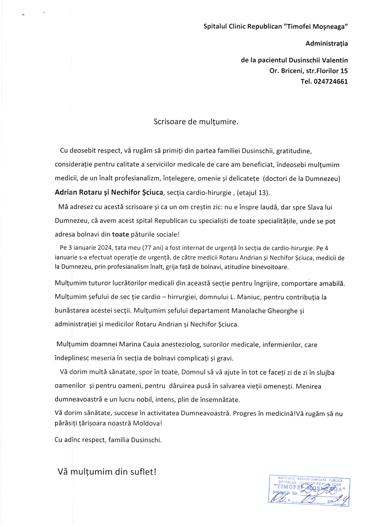 Apreciere din partea pacienților și rudelor acestora pentru echipa noastră:
