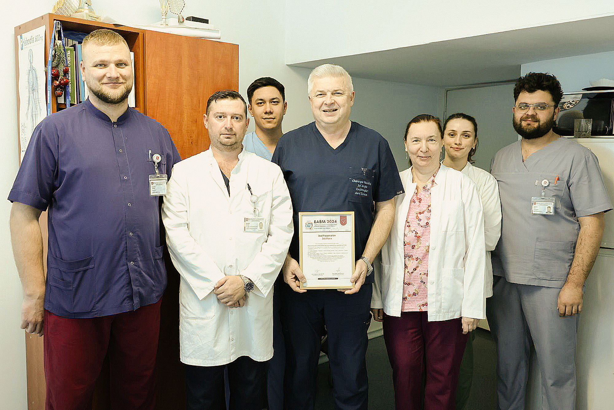 Chirurgii vasculari și endovasculari de la IMSP Spitalul Clinic Republican „Timofei Moșneaga” au obținut locul al treilea la concursul pentru cel mai interesant caz clinic relatat, în cadrul celei de-a 17-a Reuniuni Anuale a Societății Euro-Asiatice de Chirurgie Cardiovasculară și Toracică (EABM), desfășurată între 17-20 octombrie la Iași. Echipa a fost premiată pentru o intervenție unică și complexă – debranching aorto-viscero-birenal și bifemural cu endoprotezare toracoabdominală – efectuată pentru salvarea unui pacient de 68 de ani, diagnosticat cu un anevrism toraco-abdominal de aortă, însoțit de alte complicații arteriale. Operația, care a durat peste 11 ore, a combinat multiple tehnici inovatoare pentru un rezultat de succes.