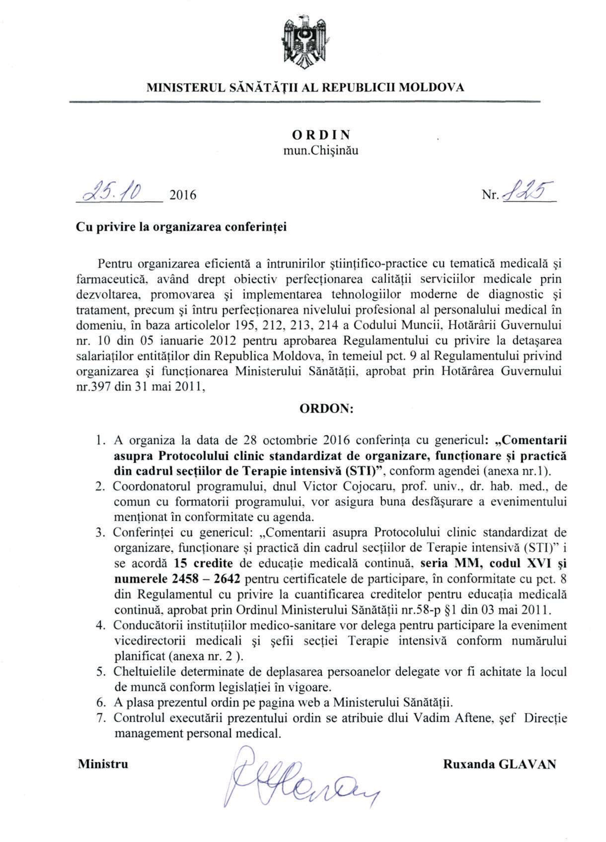Conferința „Comentarii asupra Protocolului clinic standardizat de organizare, funcționare și practică din cadrul secțiilor de Terapie intensiva (STI)”