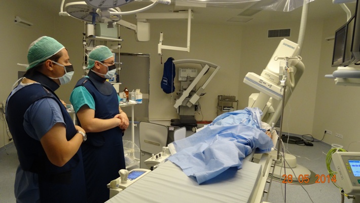 Realizarea investigaţiei a fost posibilă în cooperare cu secţia de chirurgie endovasculară a SCR şi a unui expert al companiei Siemens, producătorul instalaţiei ”Artis Zee”. Întreaga echipă de neurochirurgi, condusă de Dr. Aurel Bodiu şi chirurgie endovasculară, condusă de Dr. Eduard Bernaz a realizat anterior un curs de perfecţionare de 2 săptămâni direcţionat spre însuşirea posibilităţilor multiple ale echipamentului.