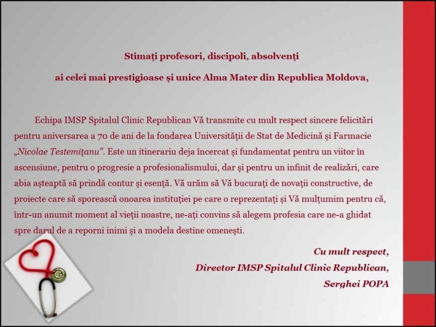 Mesaj de felicitare cu ocazia aniversării a 70 ani de la fondarea Universității de Stat de Medicină și Farmacie „Nicolae Testemițanu”