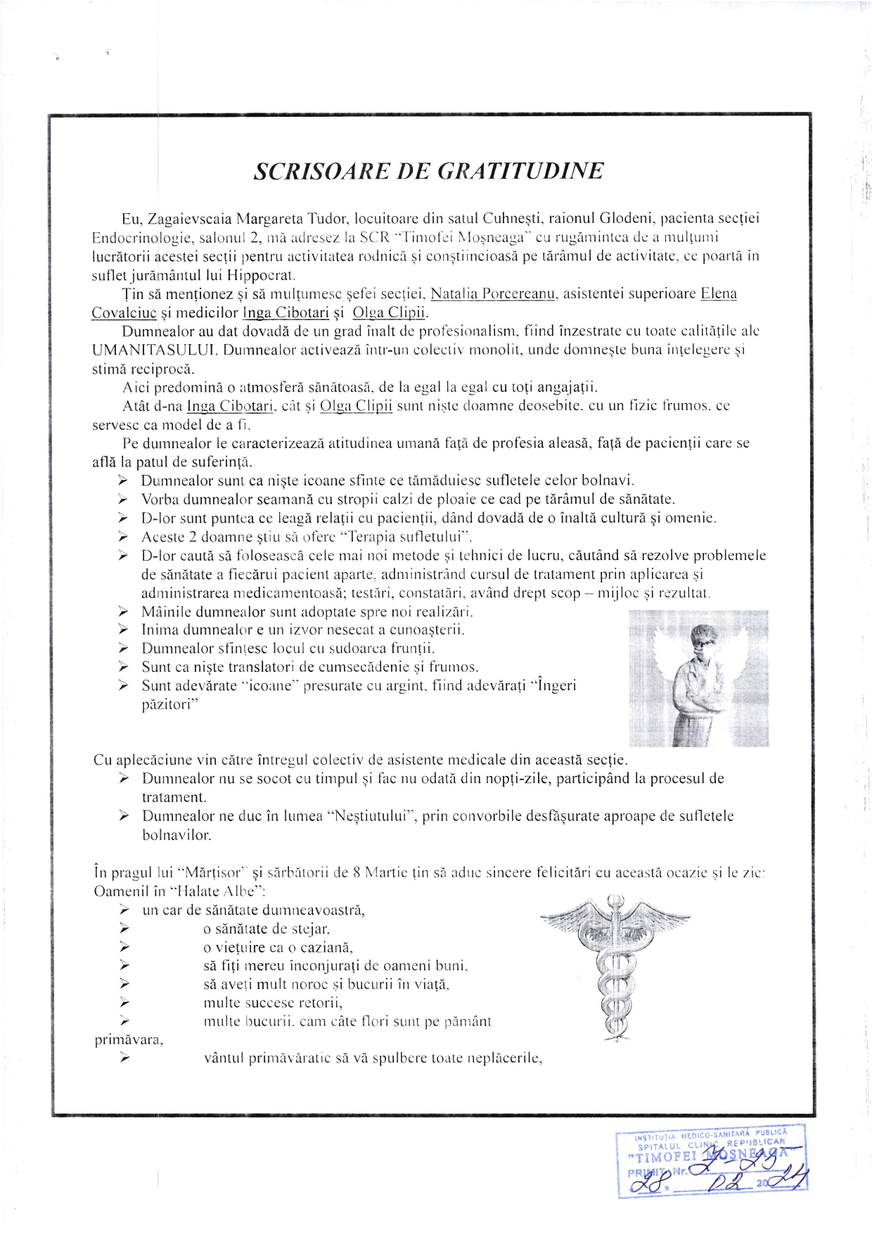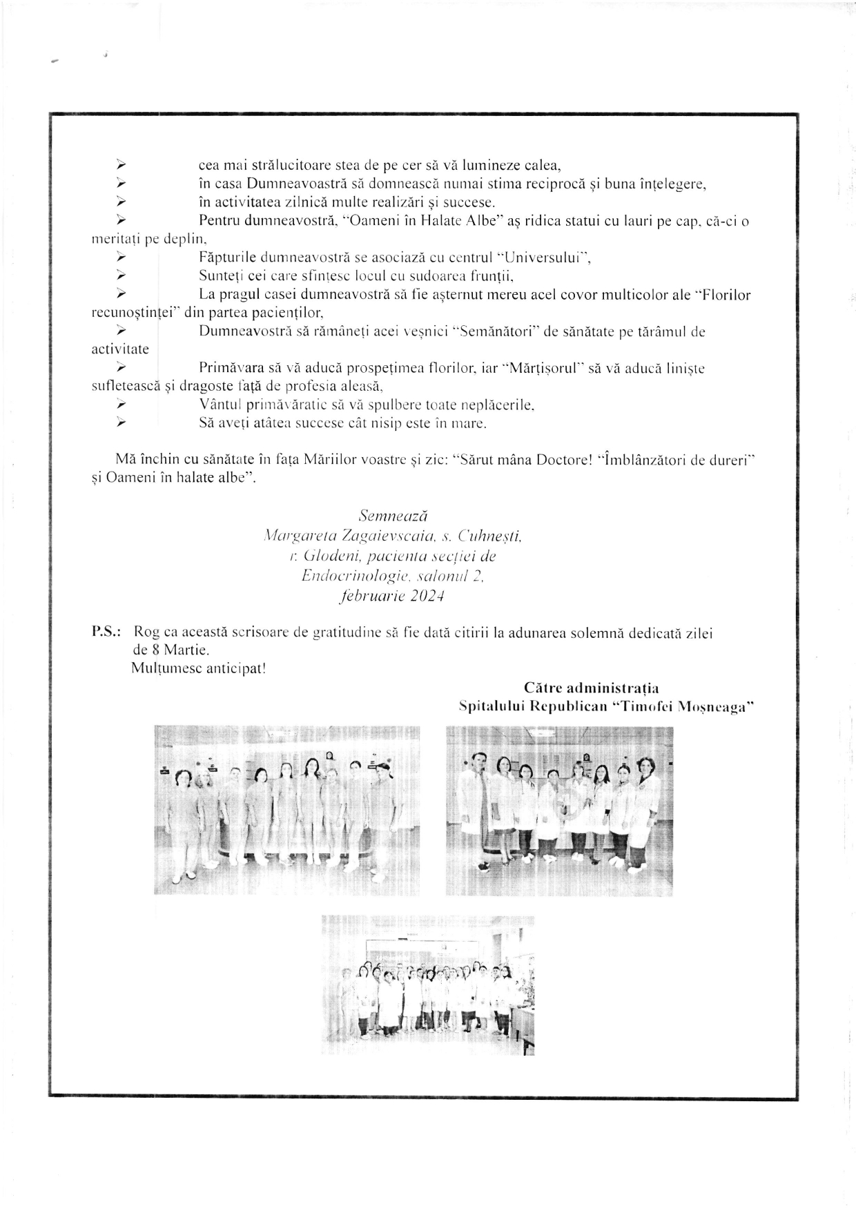 Mesaj de mulțumire colectivului Secției Endocrinologie