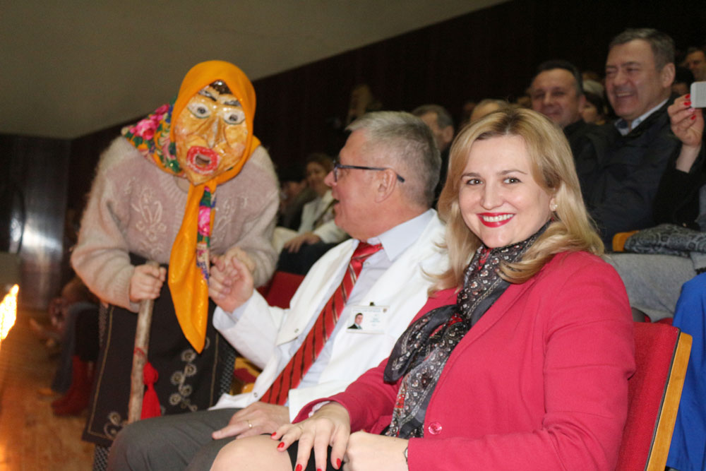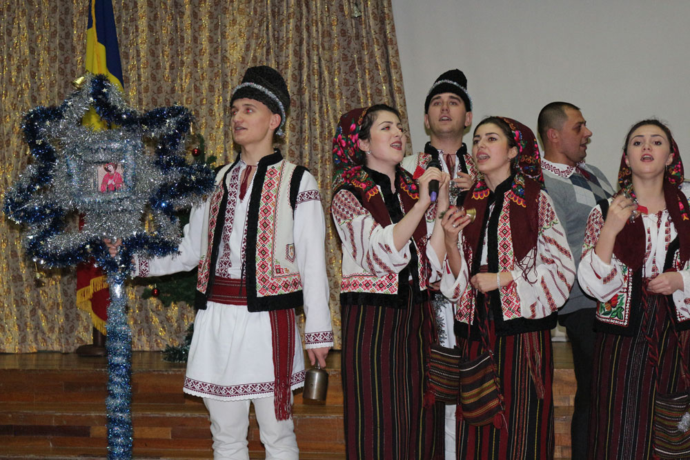 Atmosfera de sărbătoare a fost completată de ansamblul de cântece şi dansuri naţionale „Romaniţa” al Colegiului de Medicină şi Farmacie. Ei au colindat spectatorii, le-au urat belşug în toate şi LA MULŢI ANI!