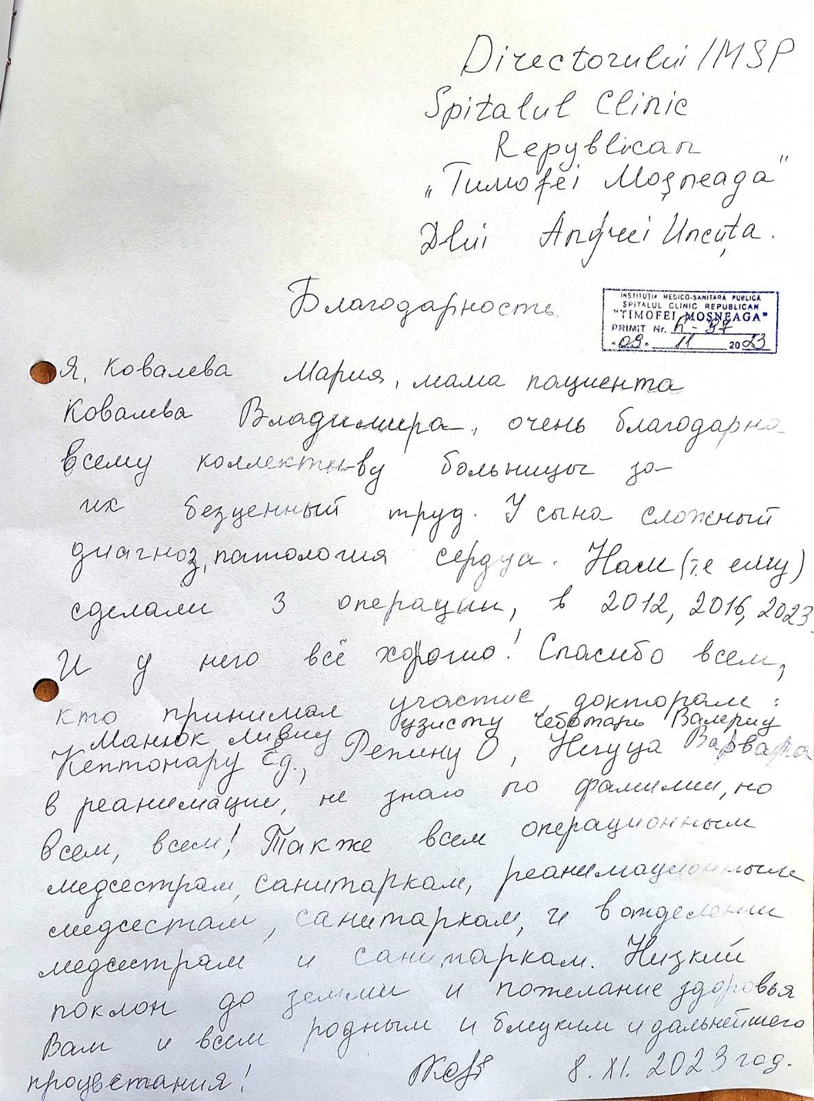 I-au salvat inima. Mesaj de mulțumire din partea unei mame, copilașul căreia a fost operat cu succes de chirurgii secției Malformații Cardiace Congenitale