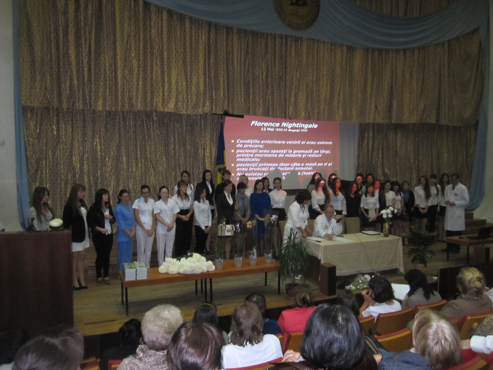 La 25 septembrie curent, în incinta IMSP Spitalul Clinic Republican, s-a desfăşurat activitatea dedicată depunerii jurămîntului tinerilor specialişti – asistenţi medicali. La eveniment au participat reprezentanţi ai administraţiei instituţiei, întreg personalul de nursing, precum şi invitaţi din alte instituţii medicale. Activitatea solemnă a fost deschisă de către directorul instituţiei, dl Serghei Popa. Cuvinte de felicitare, sfaturi şi cuvinte de bun augur au fost rostite şi de către asistenta medicală şefă a SCR, dna Valentina Saghin, Vicedirectorul planificare şi strategii medicale, dl Nicolae Frunză, asistentele medicale superioare, care dispun de o mare experienţă şi staj de muncă – doamnele Bilic Larisa (secţia Artrologie) şi Cauia Ecaterina (Blocul de operaţii) ş.a.