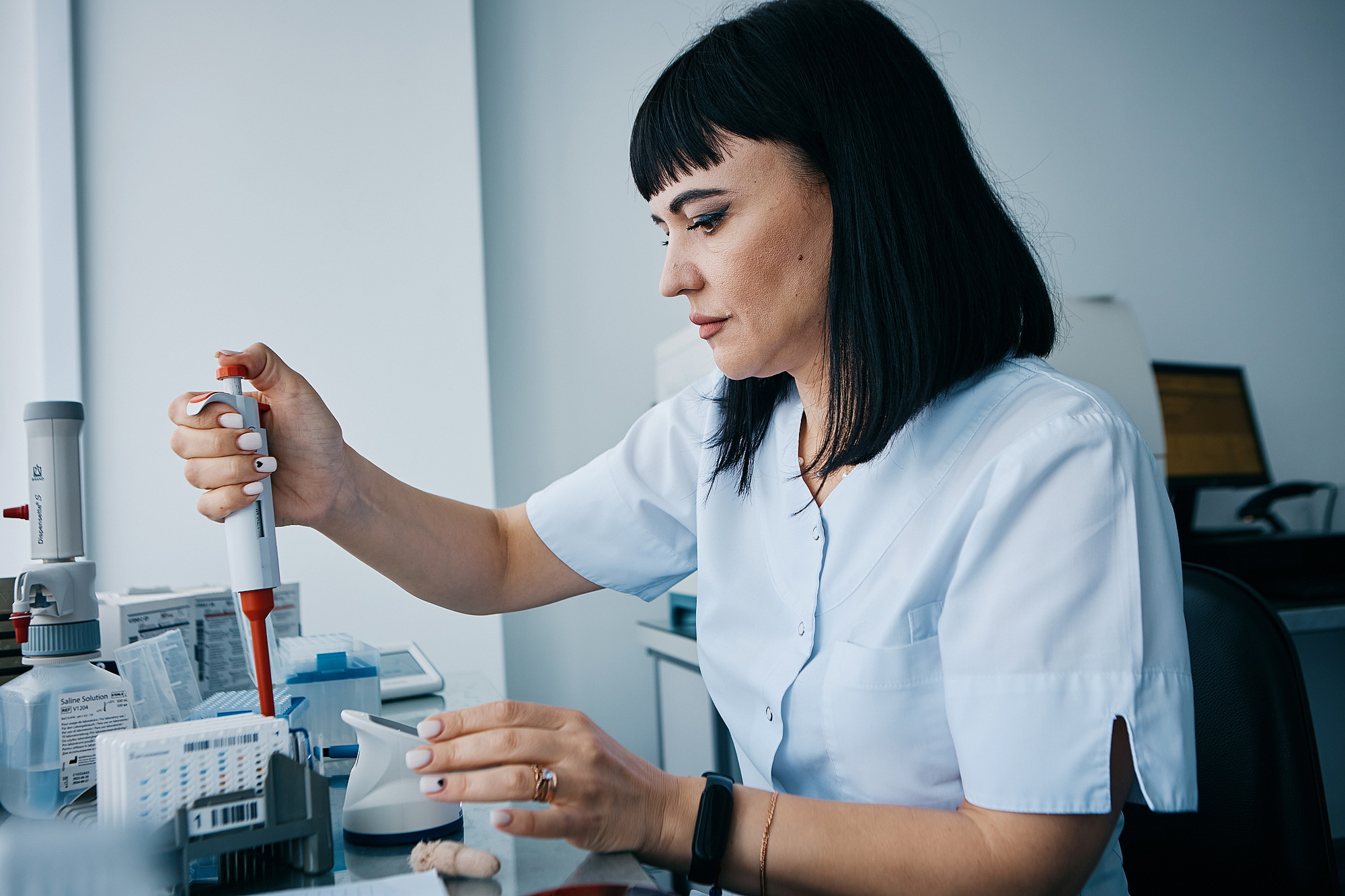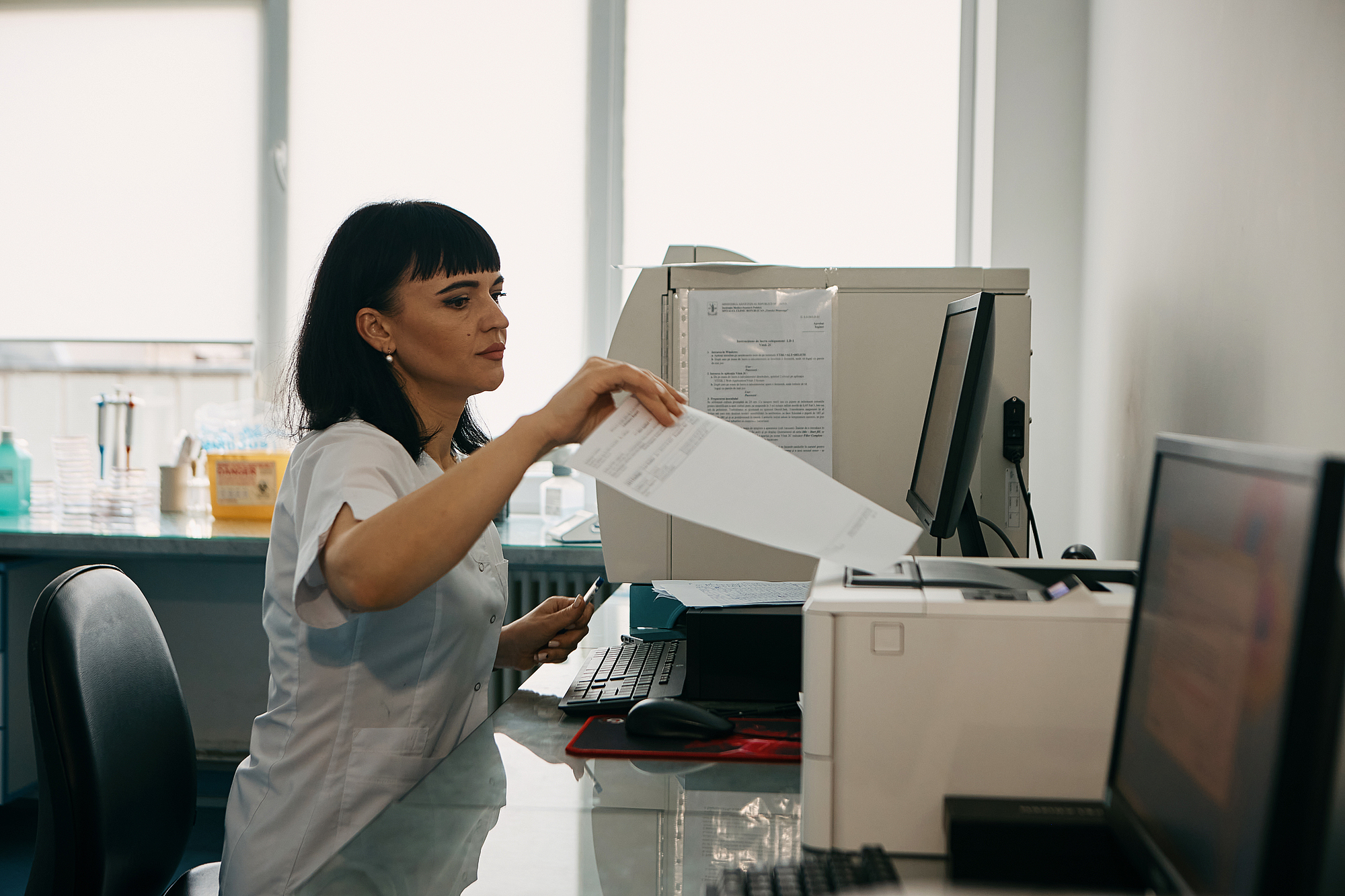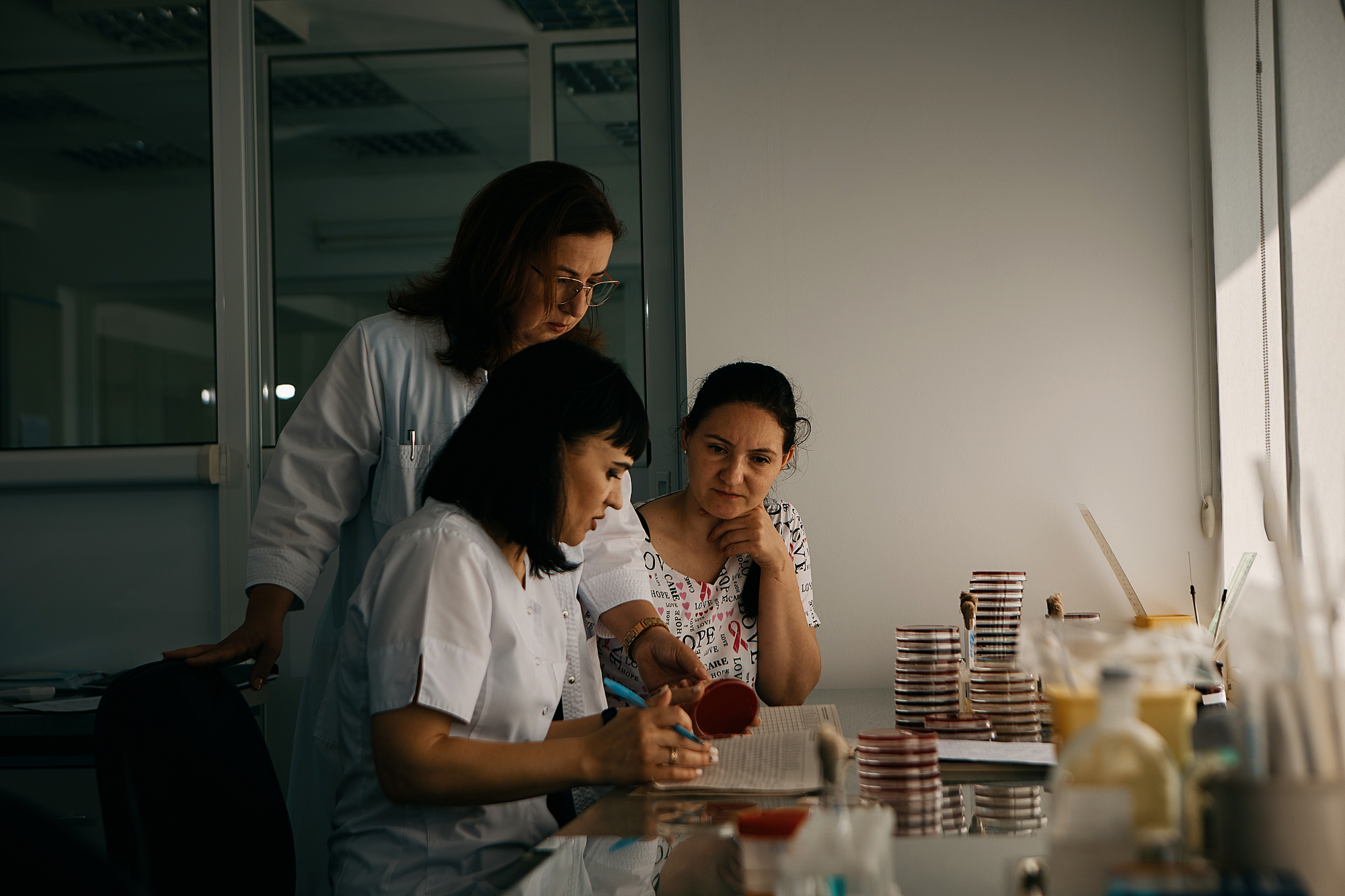 După ce duce fetița la grădiniță și Lucia ajunge la serviciu. Astăzi însă, i-am prins venind împreună. Munca lor este plină de riscuri: Lucia se confruntă zilnic cu bacterii rezistente, în timp ce Ștefan lucrează sub radiație. „Ne este frică, dar mergem mai departe, căci ne place ceea ce facem,” recunoaște Lucia. Serviciul ei este esențial pentru diagnosticarea corectă și rapidă a infecțiilor, oferind astfel medicilor informațiile necesare pentru stabilirea tratamentului adecvat. „Lucrez cu culturi, medii și bacterii care sunt incubate timp de 12-24 de ore, pentru a oferi rezultate precise. Încerc să ajung înainte de ora 8, ca doctorii să aibă deja rezultatele”, spune ea.