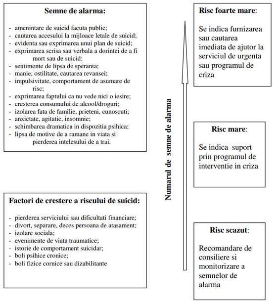 Contrar a ceea ce se crede, indivizii cu ideație suicidară (autoraportarea de gânduri suicidare și de angajare într-un comportament legat de dorința de suicid) sunt în majoritatea cazurilor dispuși să împărtășească aceste gânduri atunci când sunt întrebați în mod corespunzător și într-un context adecvat care să respecte confidențialitatea și sensibilitatea subiectului. În Republica Moldova în anul 2023 s-au înregistrat 281 cazuri de suicid la maturi. În țara noastră servicii de asistență medicală și reabilitare psihosocială pentru persoanele cu probleme de sănătate mintală sunt oferite în cadrul Centrului Comunitar de Sănătate Mintală.