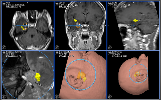 Cazul s-a dovedit a fi unul din categoria celor cu dificultate majoră. Pe lângă dimensiunile mari ale tumorii, a edemului cerebral perilezional, s-a constatat că tumoarea se află în vecinătatea imediată a zonelor verbale care ar putea suferi în timpul operației tradiționale. Pentru a elucida mai bine rapoartele anatomice, pacientul a realizat o investigație RMN cu utilizarea mai multor regimuri speciale: regim neuronavigație, DTI, DWI, Fiber Tracking și Mappingul Cortical preoperator prin Rezonanță Magnetică Funcțională – fMRI. Astfel, echipa chirurgicală a obținut informații foarte utile despre rapoartele anatomice regionale și distribuția diferitor funcții pe scoarța cerebrală. Aceste date au fost necesare pentru integrarea cu sistemul de neuronavigație.