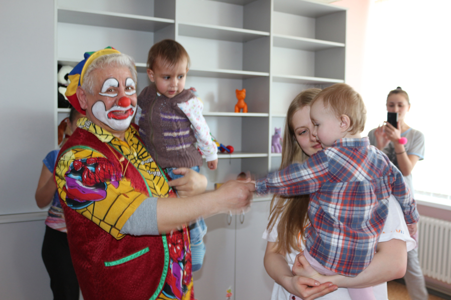 Prima destinaţie a fost Secţia Chirurgia Malformaţiilor Cardiace Congenitale. Aici micuţii internaţi împreună cu părinţii lor au avut parte de un show organizat de un clovn cu echipa sa. Copiii au dansat, s-au jucat, au făcut poze şi felicitări.
