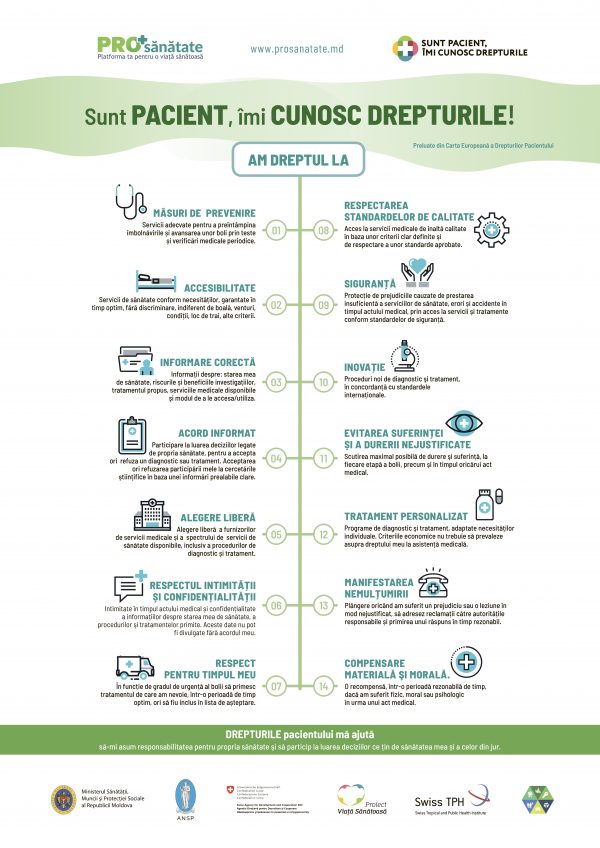 Conform Cărții Europene a Drepturilor Pacienților, drepturile pacienților sunt:
