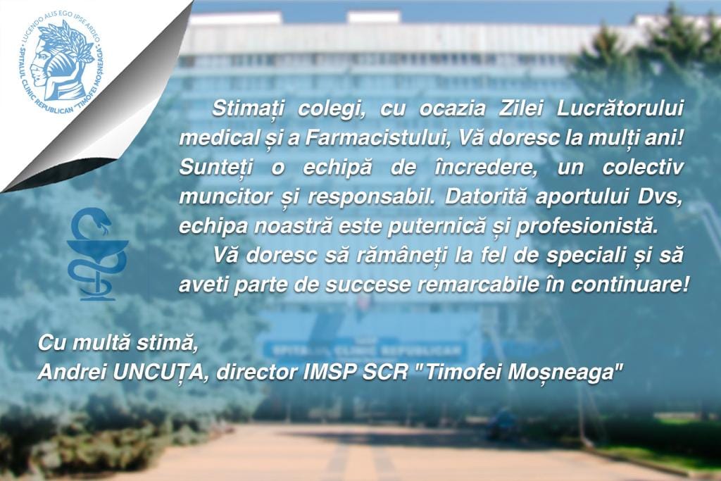 Felicitări cu ocazia Zilei Lucrătorului Medical și a Farmacistului