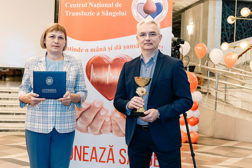 Înmânarea diplomei a avut loc în cadrul evenimentului organizat de Ministerul Sănătății și Centrul Național de Transfuzie a Sângelui, la Palatul Republicii din municipiul Chișinău.
