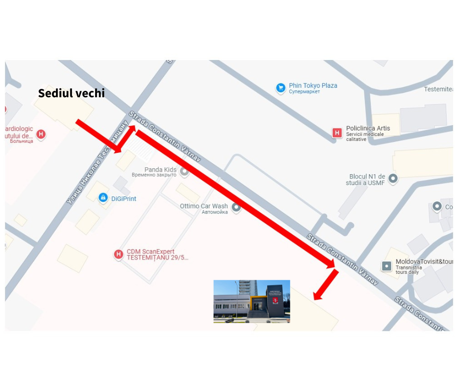 Уважаемые пациенты, сообщаем вам, что начиная с 24 марта 2025 года, Поликлиника Республиканской Клинической Больницы имени ”Тимофея Мошняги” будет работать в новом здании, расположенном по адресу: ул. Тестемицану, 29 (вход с улицы Константина Вырнава).