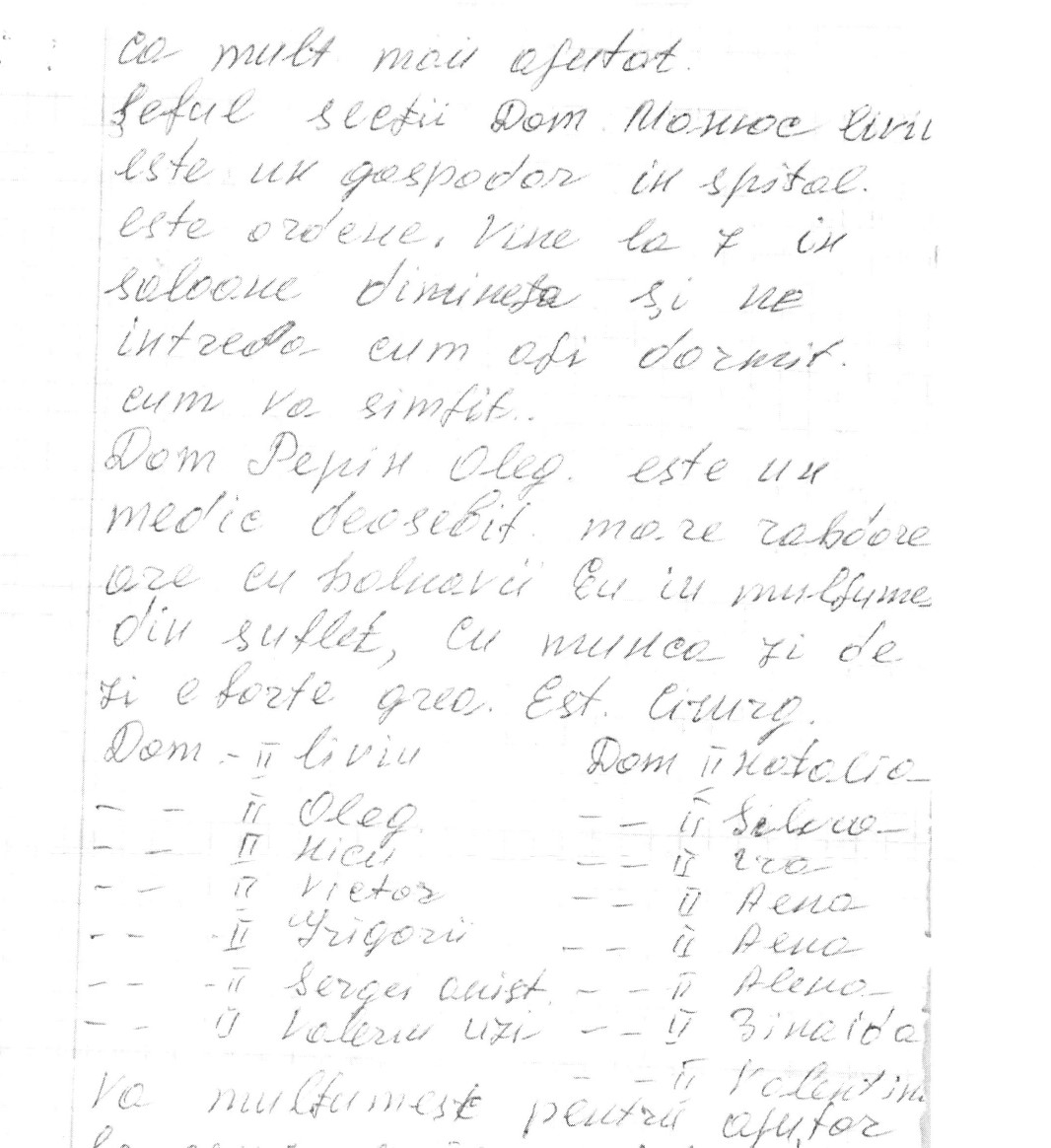 Pacienta noastră transmite un sincer Mulțumesc! pentru îngrijirea deosebită și profesionalismul echipei medicale a IMSP Spitalul Clinic Republican ”Timofei Moșneaga”: