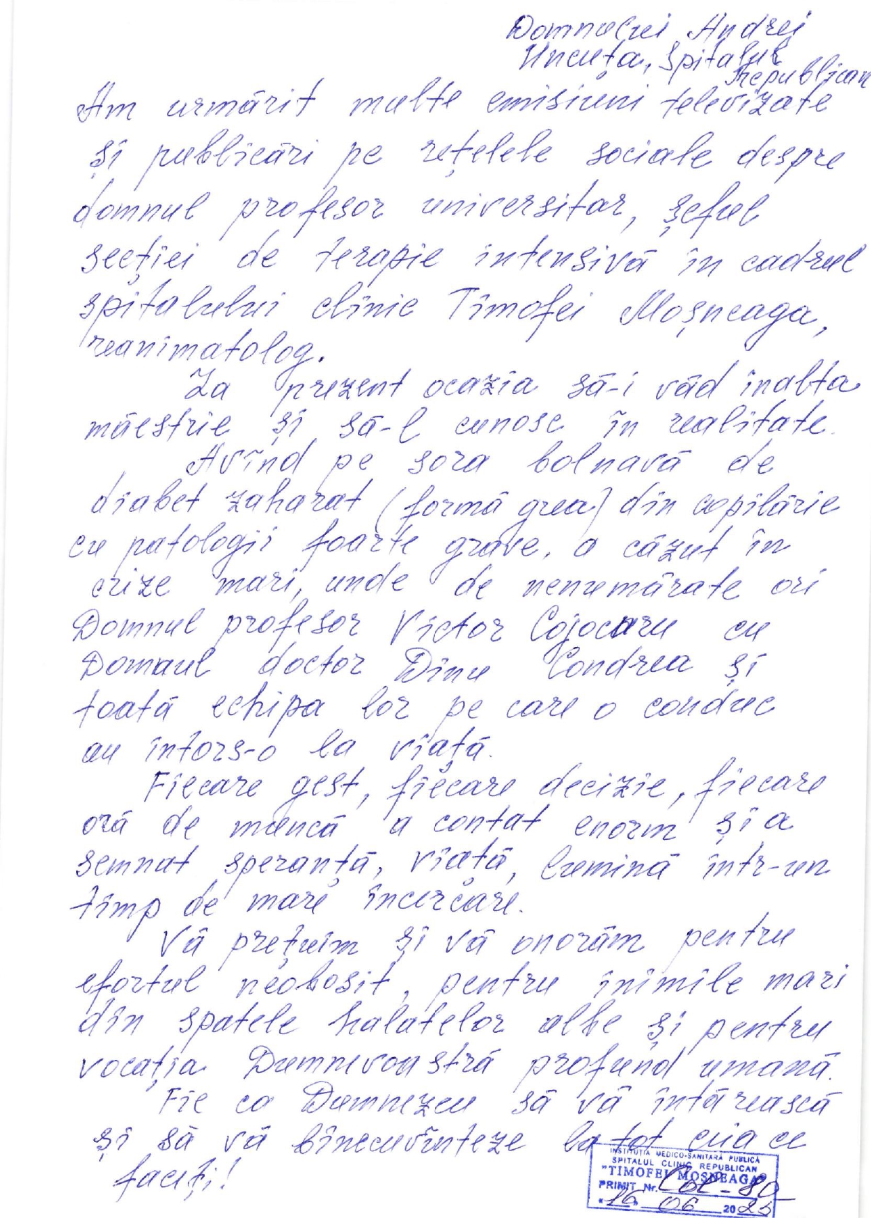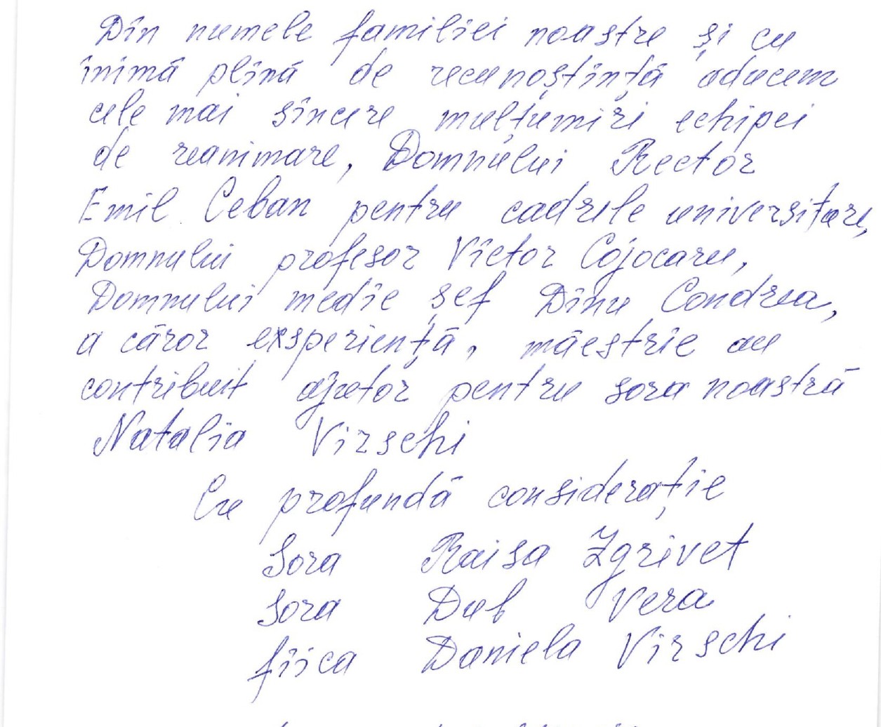 Mesaj de mulțumire dlui prof. V.Cojocaru