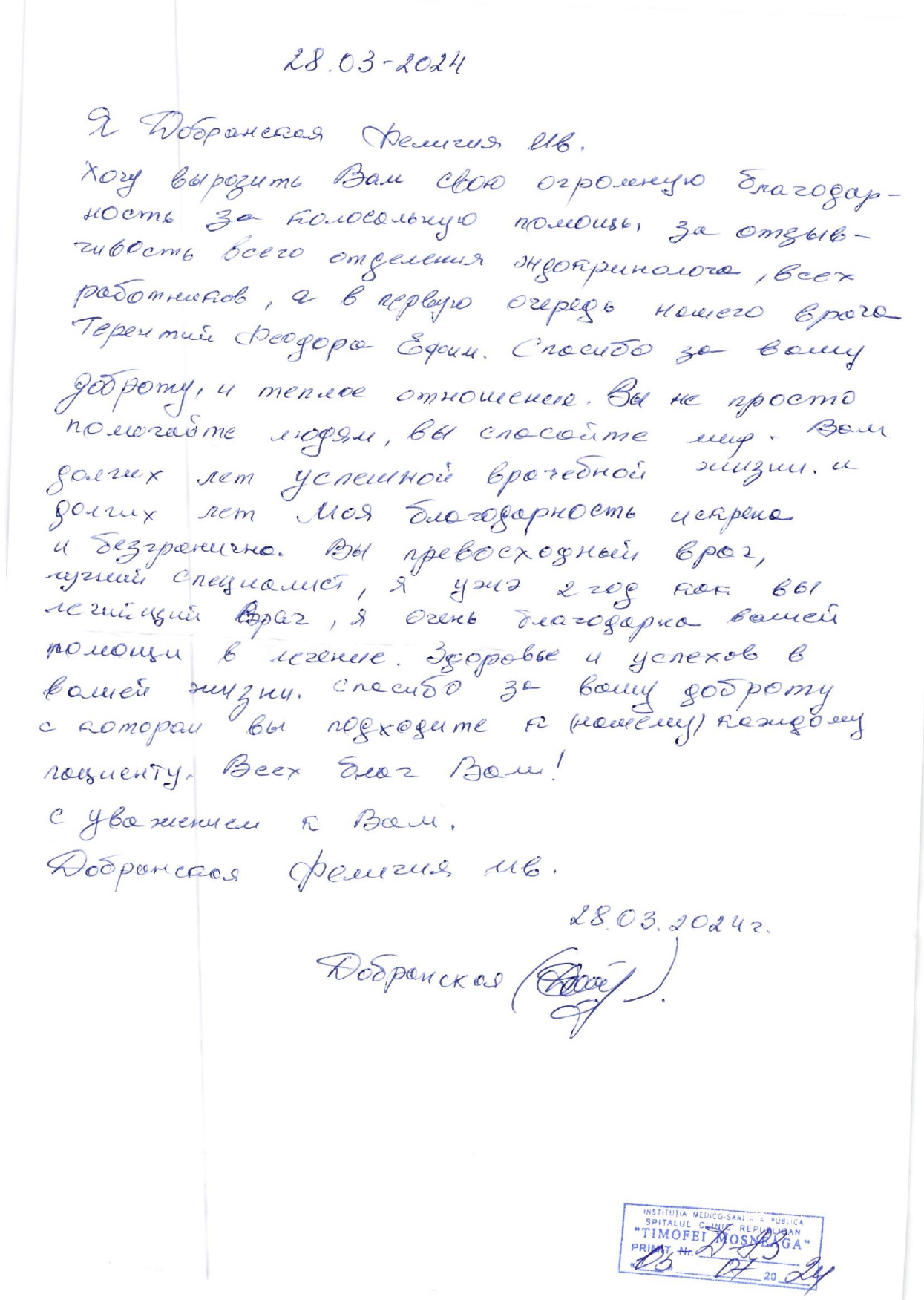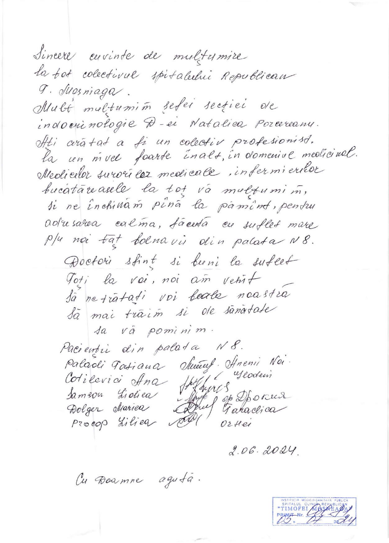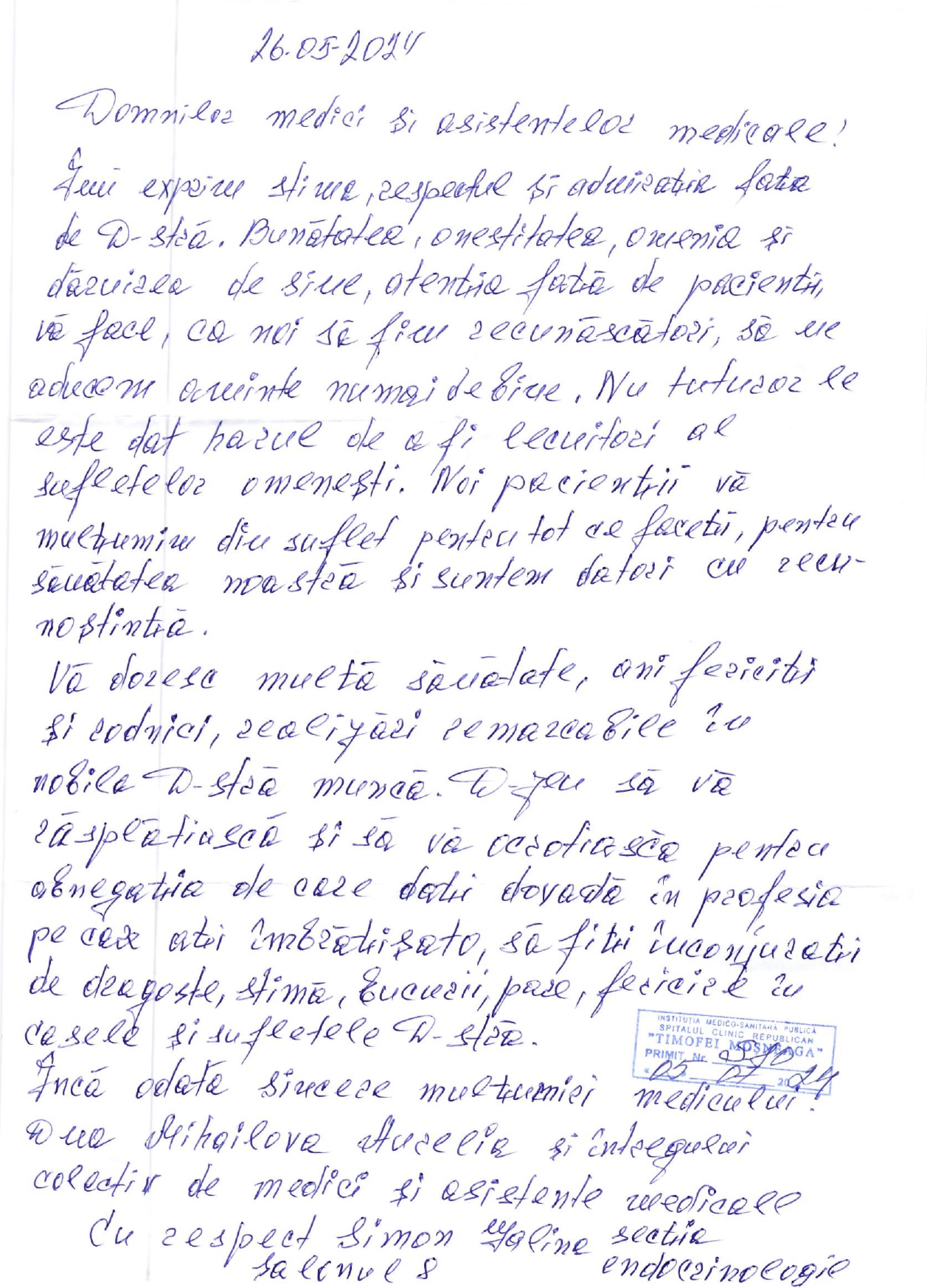 Mulțumiri Secției Endocrinologie