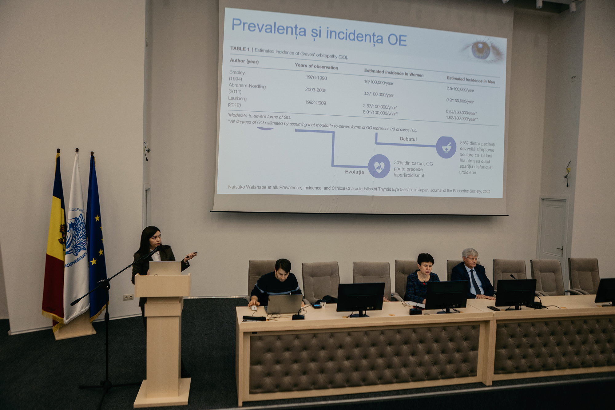 Moderatori și prezentări: președintele Societății Medicilor Endocrinologi din Republica Moldova, Alexa Zinaida, conf.univ. Lorina Vudu, șefa Catedrei de endocrinologie, prof. univ. Eugen Bendelic, șeful Catedrei de oftalmologie, Rizov Cristina, dr. șt. med., conf. univ., Catedra de endocrinologie, USMF „N.Testemițanu”, Păducă Ala, dr. șt. med., conf. univ., Catedra de oftalmologie, USMF „N.Testemițanu”, Șeremet Aristia asist. univ., Catedra de endocrinologie, USMF „N.Testemițanu”, Vudu Stela, asist. univ., Catedra de endocrinologie, USMF „N.Testemițanu”, Harea Dumitru, dr. șt. med., conf. univ., Catedra de endocrinologie, USMF „N.Testemițanu”.
