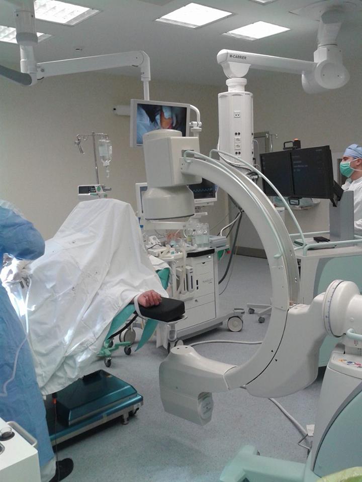 Doctorii au menţionat că tehnicile endovasculare simultane au fost posibile datorită aparatului de angiografie mobil şi prezenţa ecranizării radioprotective a sălii de operaţie ce permite la pacienţii selecţi asocierea tehnicilor tradiţionale deschise cu etapa endovasculară în aceeaşi şedinţă operatorie.