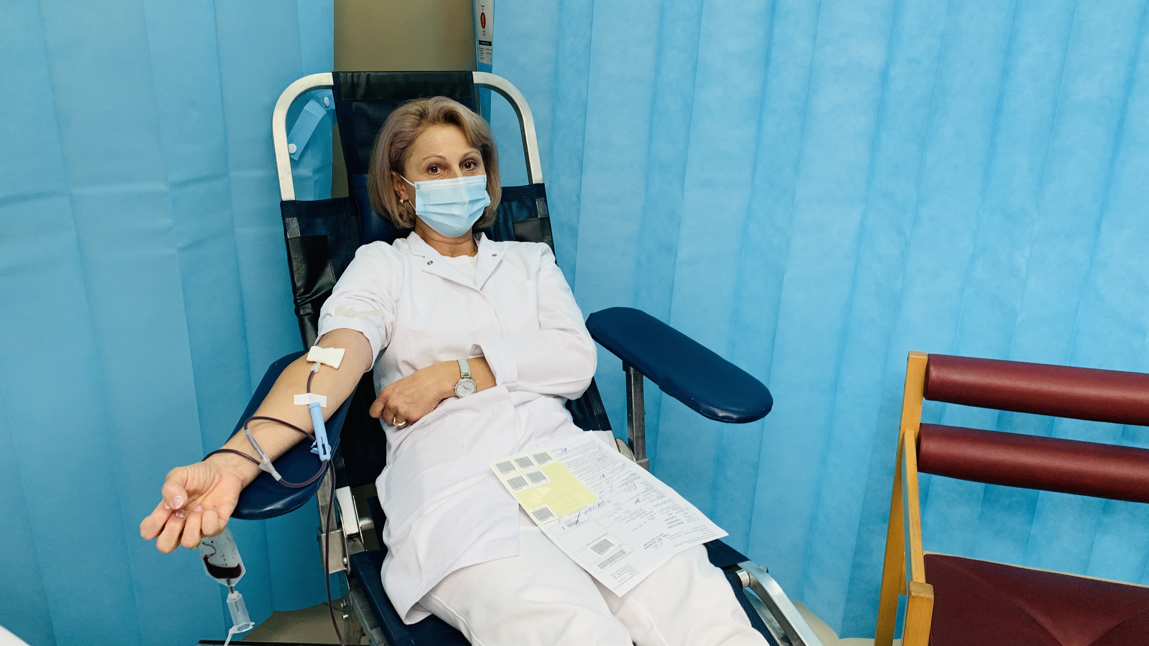 Ecaterina SCARLAT, medic anesteziolog reanimatolog: ”Este pentru prima dată când donez sânge. Acum îmi permite starea de sănătate să fac acest lucru. Donarea de sânge joacă un rol foarte important. Aceasta este salvarea vieții unui om”.