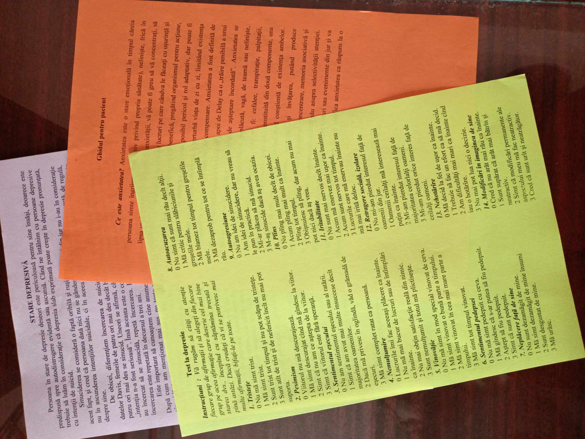Conform Planului de acțiuni menționat mai sus, sunt elaborate și distribuite pentru informarea populației următoarele pliante color: “ Consilierea psihologică - autocunoaștere și dezvoltare personală”, „Anxietatea – factor cu impact major în sănătatea mintală”, „Chestionar pentru determinarea nivelului de depresie”, „Asistența psihologică pacienților cu boli cronice renale în stadiul terminal”, “Ajutorul psihologic în stări depresive cu intenții suicidale și recuperarea socială a lor”.