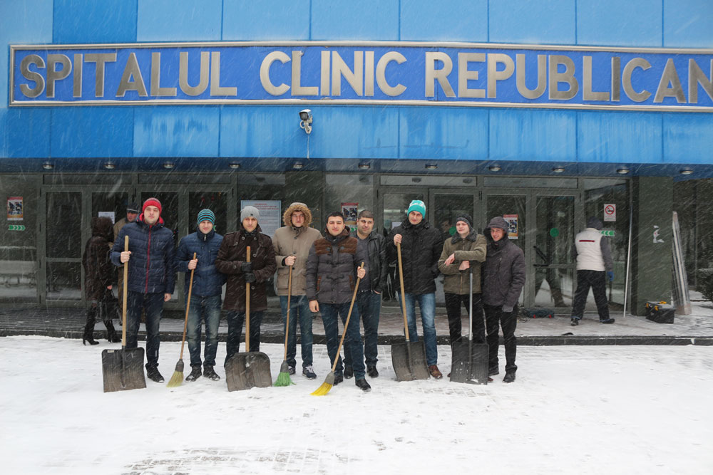 Întrucât de astăzi iarna şi-a intrat în drepturi, iar în întreaga ţară s-a anunţat cod portocaliu de ninsori, aceştia au decis să dezăpezească drumurile din preajma spitalului, pentru ca oamenii să aibă acces liber în instituţie. Astfel, în frunte cu directorul SCR, Anatol Ciubotaru, aproximativ 20 de medici-rezidenţi „s-au echipat” cu lopeţi şi mături şi au purces la treabă. Nici timpul geros de afară nu le-a fost o piedică.