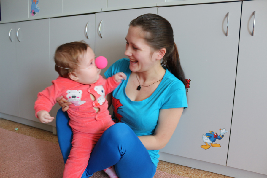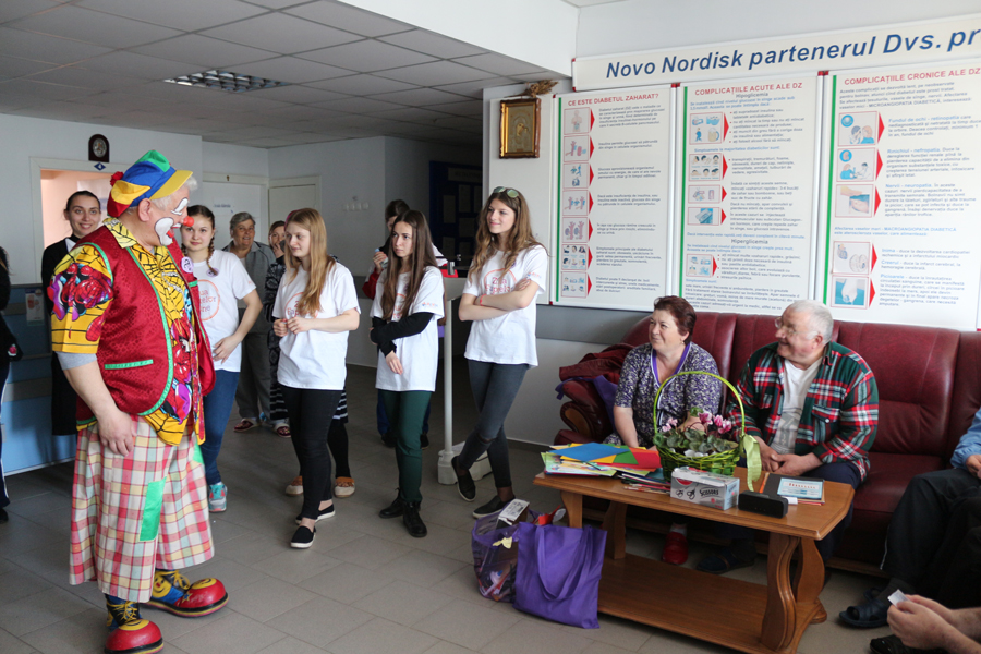Prima destinaţie a fost Secţia Chirurgia Malformaţiilor Cardiace Congenitale. Aici micuţii internaţi împreună cu părinţii lor au avut parte de un show organizat de un clovn cu echipa sa. Copiii au dansat, s-au jucat, au făcut poze şi felicitări.