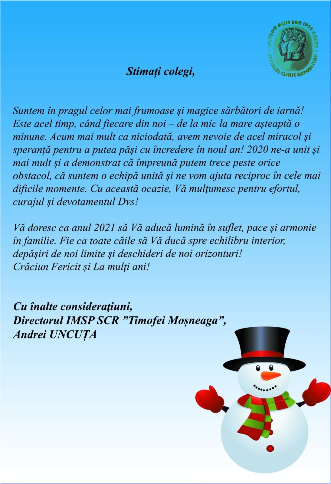 - La mulți ani, directorului IMSP SCR "Timofei Moșneaga", dlui Andrei Uncuța